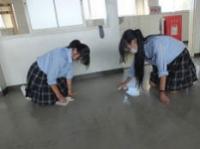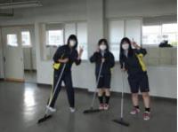 旧校舎の清掃にあたったテニス部の諸君のほとんどは新校舎が完成してからの入学生でしたが,黎明中学校からもちあがってきた部員が旧校舎を案内し,校舎への愛着を話しながらの温かい清掃となりました。