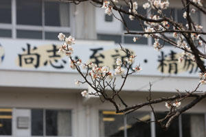 旧校舎中庭のロータリーに,春早く,香を漂わせた白梅は,今は三代目の校舎の西側に移植され,新しい地で変わらぬ香を生徒達に届けてくれています。