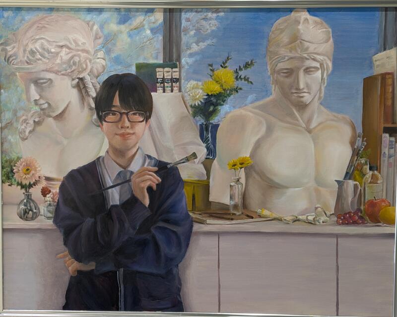 「苦手な人物像」とありますが、前回の県高等学校美術展では人物像で奨励賞を頂いています。さらに、その作品は教科書会社の「光村書店」の生徒作品ギャラリーに掲載されました。(https://artby.jp/wp-content/uploads/2025/03/k_00254.jpg)