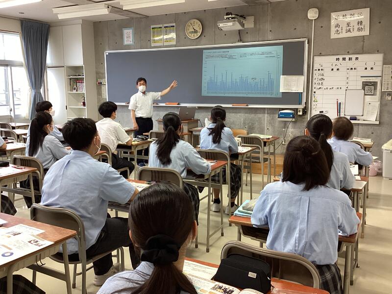 過日5月19日(金)スタディーサポート1回目の結果について,ベネッセコーポレーション(株) 足名佑樹氏をお招きしてガイダンスを各学年で実施しました。