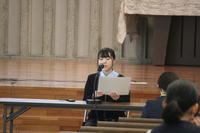 昼休みを挟んで、13時30分よりアナウンス部門が行われました。こちらも聞くことに慣れていないとどこで甲乙をつけていいのか分からないほど、どの学校の生徒も上手に原稿を読めています。しかし審査員の先生方からすれば読み方の癖やアクセント、強弱などで上手いかどうかはよくわかります。また朗読と異なり、自作の原稿の内容も考慮されます。丁寧な取材に基づいて書いた高校生らしい生き生きとした内容を、明るく爽やかに伝えることを心がけて読みましょう。