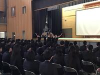 ものがたりは、秋田出身の井口阿くりさんの生涯をミュージカルにしたもので、東京高等学校女子師範学校の教授となり、「女子体育を教える女性の教師」を育成すべく、スウエーデン体操、ダンス、バスケットボール等、当時の日本ではまだ未知のスポーツを学生たちに教え、世間から注目をあび、そのなかでの出会いや別れなどを歌とダンスで表現した劇でした。生徒の感想では、「ミュージカルを見たことがあまりなかったですが、今まで学校でみてきたものの中でも本当に面白い芸術鑑賞で最高でした」「あくりさんの生き様がよくて感動しました。また、ダンスもみんな揃っていて迫力があり演劇の楽しさがわかりました」など、とても良い刺激になったようでした。