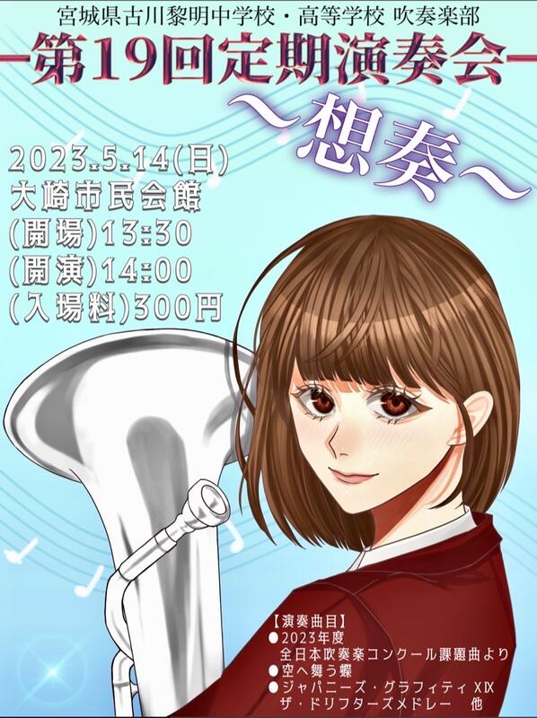 中高吹奏楽部の第19回定期演奏会が5/14(日)、大崎市民会館にて開催されます。