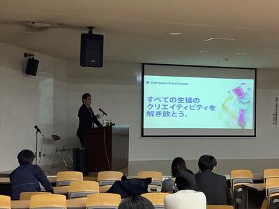 全体会の講演は聖徳学園中学・高等学校の品田健先生に「One-To-One環境での授業改善とSTEAM」と題して行い,これからの学校運営や授業改善に向けた知見をいただきました。