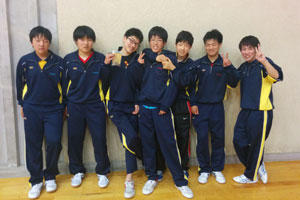 男子卓球部は、3年生1人、2年生4人、1年生2人で日々県大会に向けて練習しています。「やる時はやる、遊ぶ時は遊ぶ」をモットーにメリハリのある部活です。これからの精進に期待をして下さい。応援よろしくお願いします。